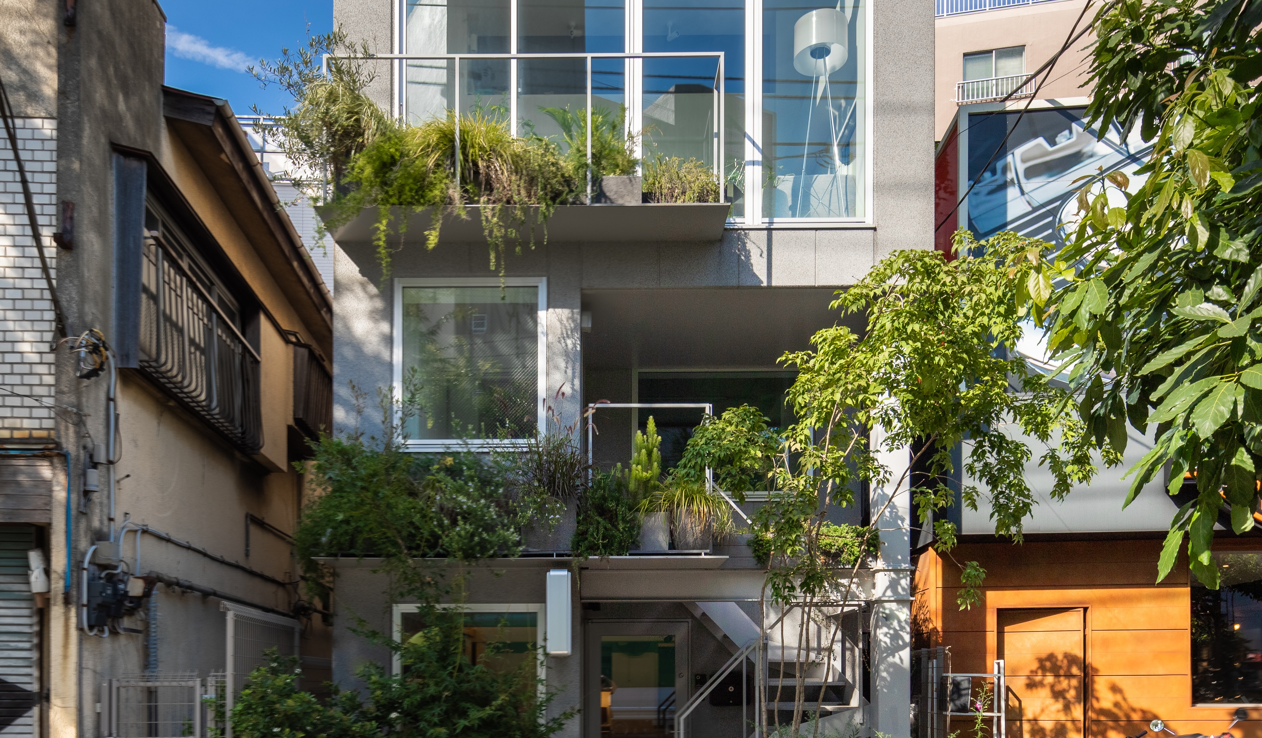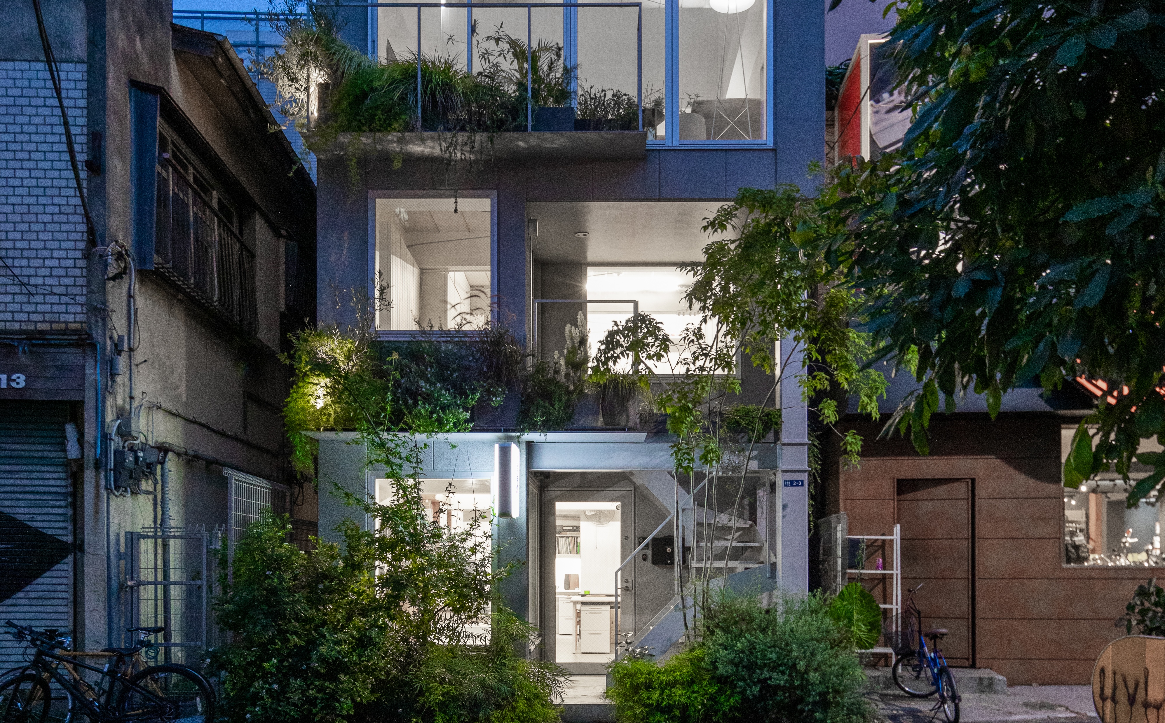 This residential project is named after Kannandori, also known as the seventh ring road of Tokyo or road number 318. Amid the confusion surrounding both the road's name and the building's design, the structure aims to blend in with the neighboring warehouses and motorcycle shops.